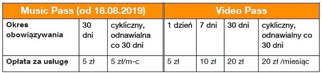 Music Pass na Tidal, Deezer, Apple Music, Amazon Music i Polskie Radio;