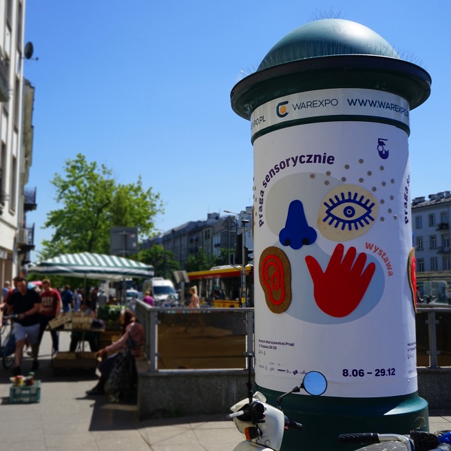 Słupy sensoryczne reklamują Muzeum Warszawskiej Pragi